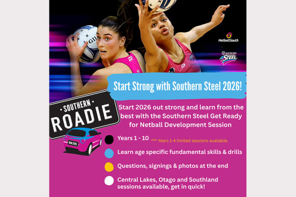 Join the SOUTHERN STEEL for a 'Get Ready For Netball development Session' and learn from the best! Bring along your best smile for a photo and signature afterwards.